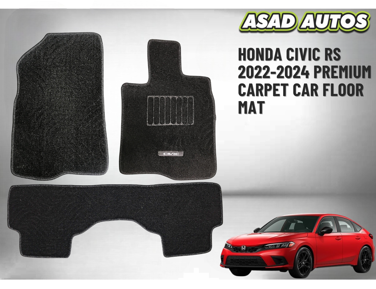 Crafted from high-density premium carpet material, these floor mats combine soft texture, dust-trapping capability, and non-slip backing for a secure and clean interior. Designed to protect against mud, spills, and wear while keeping your Civic RS looking sleek and sophisticated.