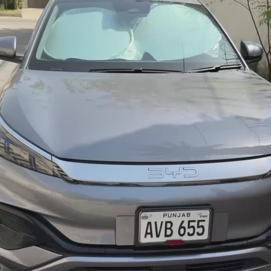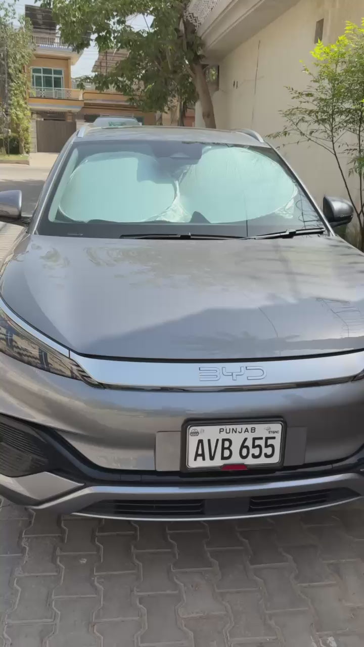 Shield your vehicle from the scorching sun and maintain a comfortable interior temperature with our Silver Round Folding Car Windshield Sun Shade. Crafted with high-quality materials, this sunshade offers reliable protection against harmful UV rays and excessive heat buildup, helping to preserve your car's interior and prevent sun damage. The round design ensures maximum coverage of your windshield, effectively blocking out sunlight and reducing glare for enhanced visibility and driving comfort. Thanks to its folding design, the sunshade is easy to install and store, making it convenient to use whenever needed. Keep your ride cool and comfortable even on the hottest days with our Silver Round Folding Car Windshield Sun Shade.